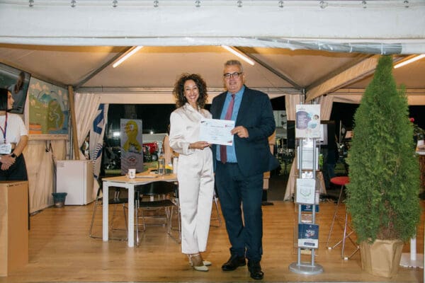 Την τελευταία ημέρα της Εκθεσης ο Πρόεδρος του Επιμελητηρίου Αθανάσιος Μαλλιαράς απένειμε στην Αντιπρόεδρο της ΔΕΥΑΣ Δέσποινα Χατζηγαβριήλ βεβαίωση συμμετοχής στο κορυφαίο Επιχειρηματικό Γεγονός.