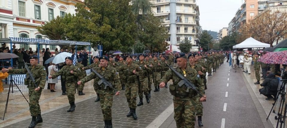 Οι Σερραίοι αψηφώντας τις άσχημες καιρικές συνθήκες παρακολούθησαν με ομπρέλες την παρέλαση καταχειροκροτώντας όλους όσοι συμμετείχαν σε αυτήν.