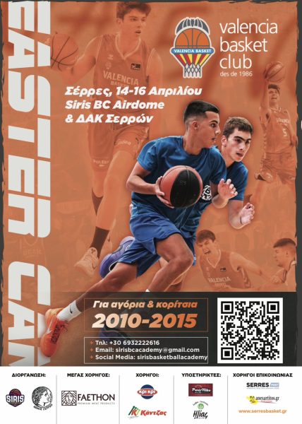 Η ιστορική ισπανική ομάδα Valencia BC -σε συνεργασία με την Siris Basketball Academy και υπό την αιγίδα του Δήμου Σερρών- διοργανώνει το επίσημο Skills Camp & Talent Evaluation Program