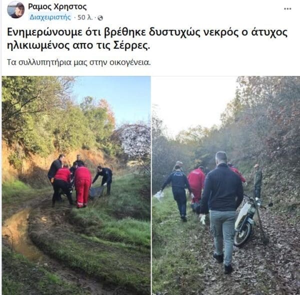 Ο 85χρονος είχε πάει την Παρασκευή το πρωί για κυνήγι με το μηχανάκι του και όταν αργά το μεσημέρι δεν είχε γυρίσει, οι οικείοι του ανησύχησαν και ειδοποίησαν τις αρχές. Οι έρευνες που ακολούθησαν μέχρι το βράδυ, απέβησαν άκαρπες. Με την συνέχιση της προσπάθειας ανεύρεσης σήμερα το πρωί, δυστυχώς τα νέα δεν ήταν ευχάριστα.