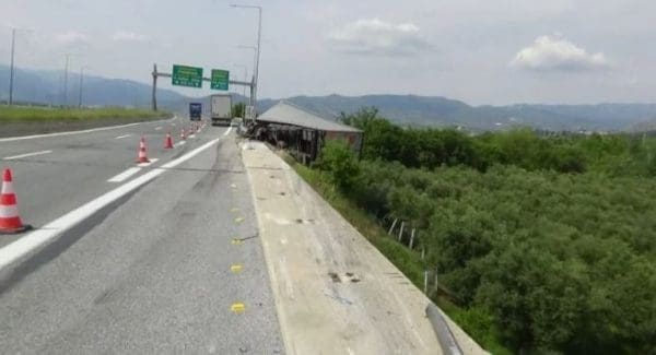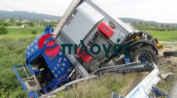 Σύμφωνα με πληροφορίες του Επιλογές, οδηγός επικαθήμενου φορτηγού έχασε τον έλεγχο, καθώς έσκασε το δεξιό λάστιχο του μπροστινού αμαξώματος, με αποτέλεσμα να πέσει πάνω στα προστατευτικά διαζώματα της γέφυρας, τα οποία έσπασαν και να συρθεί άλλα 50 μέτρα παραπέρα και αφού δίπλωσε να κρεμαστεί σχεδόν από ύψος 10 μέτρων κενού πάνω από έναν ελαιώνα στον οποίο κινδυνεύει να καταπέσει ανα πάσα ώρα και στιγμή.
