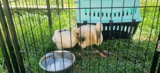 Δύο νεοσσούς πελαργούς, που έπεσαν από τη φωλιά τους, περιθάλπουν οι «Κτηνίατροι σε δράση», στο κέντρο διάσωσης της οργάνωσης, στις Σέρρες. Τα μωρά των πελαργών έπεσαν από μεγάλο ύψος, από κολώνα της ΔΕΗ, που ήταν η φωλιά τους, με τους κατοίκους στο Άνω Μητρούσι να μην μένουν ασυγκίνητοι και να καλούν άμεσα τους εθελοντές κτηνιάτρους προκειμένου να παράσχουν τις πρώτες βοήθειες στα όμορφα πτηνά.