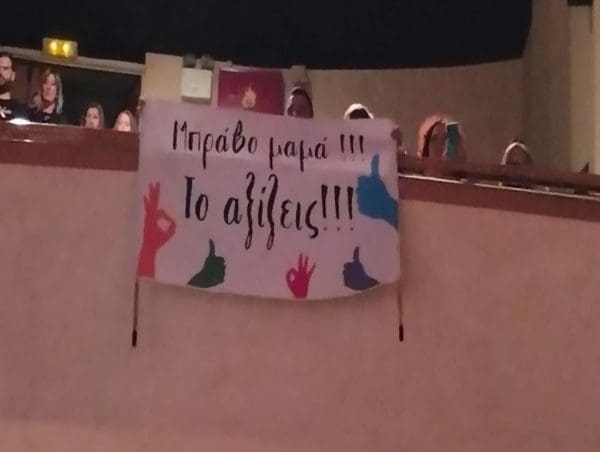 Επίσης έντονα φορτισμένη η στιγμή της ανάρτησης πανό από τα παιδιά της νέας Δημάρχου που έγραφε «Μπράβο μαμά, το αξίζεις»