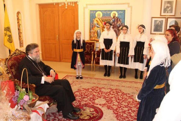 Τα παιδιά ευχαρίστησαν τον πνευματικό τους πατέρα για την δοχή και την διαχρονική του αγάπη και υπέβαλαν τις ευχές τους για τις άγιες ημέρες των αχράντων Παθών και της λαμπροφόρου Αναστάσεως του Κυρίου μας Ιησού Χριστού, προσφέροντας και παραδοσιακά δώρα της ημέρας, αλλά και του αγίου Πάσχα.