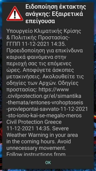 Προειδοποιεί για έντονα καιρικά φαινόμενα και καλεί τους κατοίκους να αποφύγουν τις άσκοπες μετακινήσεις, καθώς αναμένονται επικίνδυνα καιρικά φαινόμενα τις επόμενες ώρες.