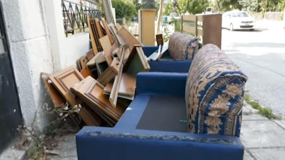Αποφάσισε να κάνει ανακαίνιση αλλά δεν ήθελε να πληρώσει κάδο ογκωδών και θεώρησε πρέπον να αφήσει όλα το παλιό σαλόνι της πάνω στο πεζοδρόμιο. Ο λόγος για μια σερραία δημότη που διαμένει στην οδό Κίου η οποία εδώ και μέρες έκανε κατάληψη του πεζοδρομίου με όλα τα πράγματα που αποφάσισε να βγάλει μέσα από το σπίτι της.