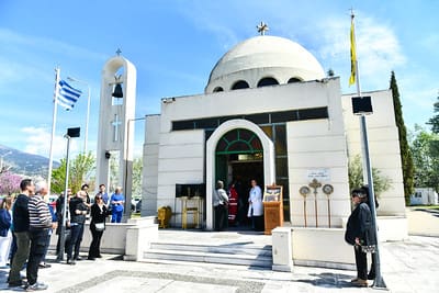 Εν συνεχεία, το αποκαθηλωθέν «Σώμα» του Κυρίου μας οδηγήθηκε λιτανευτικώς στο πλησίον του υπερώου λελατομημένο εκ πέτρας κενοτάφιο. Προ της απολύσεως, ο Σεβασμιώτατος ευχήθηκε υπέρ μακαρίας και αιωνίου αναπαύσεως των ψυχών όλων των κεκοιμημένων αδελφών μας, οι οποίοι, όπως χαρακτηριστικώς ετόνισε, αναμένουν την κοινή Ανάσταση λουσμένοι στο ανέσπερο Φως της αιωνιότητος, που μόνον ο Χριστός, η Ανάσταση και η Ζωή μας χαρίζει.
