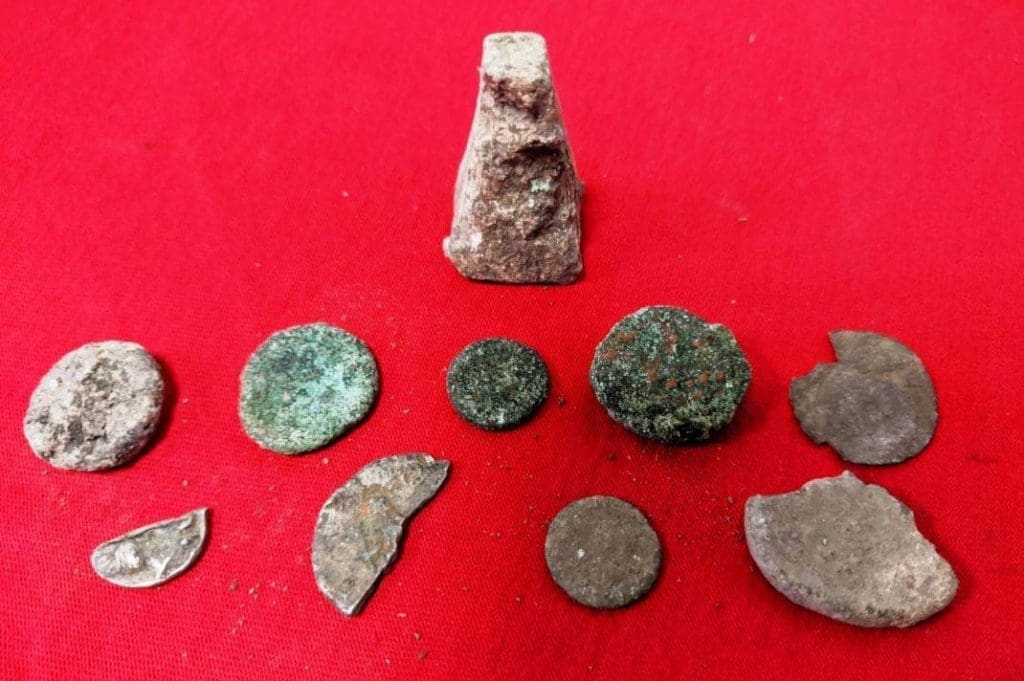 • (9) χάλκινα νομίσματα, (5) εκ των οποίων ακέραια και (4) αποσπασματικά ελληνιστικών, ρωμαϊκών και οθωμανικών χρόνων και