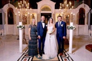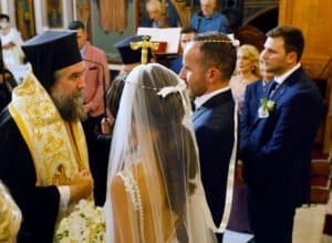 Οι δύο νέοι έλαμπαν από χαρά και ευτυχία κρατώντας ο ένας το χέρι του άλλου στην γαμήλια τελετή που τελέστηκε σε ωραία ατμόσφαιρα, συγκίνηση, εντυπωσιακές παρουσίες και κομψότητα.