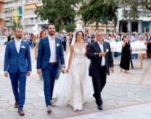 Οι ευτυχισμένοι νεόνυμφοι δέχτηκαν ευχές στον αύλειο χώρο της Μητρόπολης τηρώντας όλους τους υγειονομικούς κανόνες ενώ η συνέχεια δόθηκε σε Κοσμική Αίθουσα όπου δεξιώθηκαν τους καλεσμένους τους.