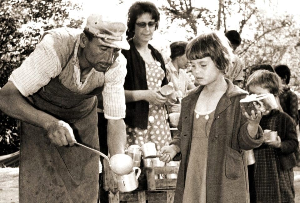 “Σε ένα δημοτικό σχολείο στα Σέρρας, στη Βόρειο Ελλάδα περισσότερα από 150 αγόρια και κορίτσια λαμβάνουν συσσίτιο. Η μικρή τους πόλη που σχεδόν καταστράφηκε ολότελα κατά τη διάρκεια των εχθροπραξιών του κομμουνιστικού μετώπου στα τέλη της δεκαετίας του ΄40 δεν έχει θεραπευτεί πλήρως. Τα συσσίτια πρόκειται να συμπληρωθούν με περισσότερο φαγητό από τις ΗΠΑ”.