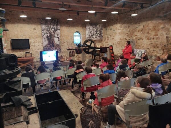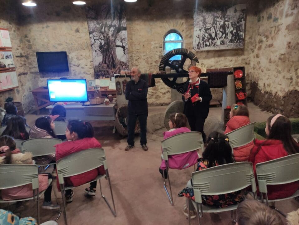 Οι μικροί επισκέπτες περιηγήθηκαν στο παλιό λιθόκτιστο, υδροκίνητο ελαιοτριβείο, το οποίο λειτουργεί πλέον ως μουσείο, και είχαν την ευκαιρία να γνωρίσουν τον τρόπο με τον οποίο οι παραγωγοί της εποχής κατόρθωναν με μεράκι, τεχνική και σκληρή δουλειά να παράγουν το ελαιόλαδο. Στον εκθεσιακό χώρο υπάρχει πλούσιο φωτογραφικό υλικό, τόσο από ψηφιακές, όσο και από έντυπες παραγωγές, ενώ είχαν την ευκαιρία να γνωρίσουν και προϊόντα της ελιάς που συνδέονται άμεσα με την περιοχή.