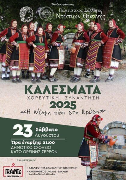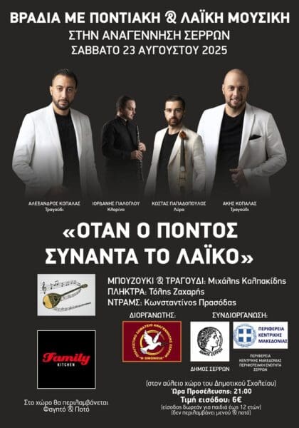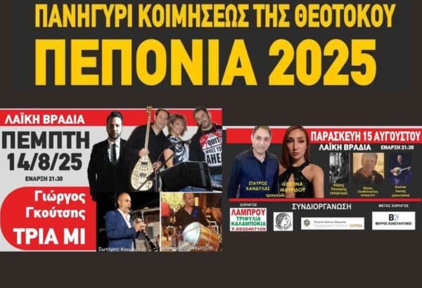 ΣΕΡΡΕΣ ΣΗΜΑΝΤΙΚΕΣ ΕΙΔΗΣΕΙΣΣέρρες: Το πρόγραμμα εκδηλώσεων σε Αναγέννηση, Πεπονιά και Ορεινή Από: Serres245 Αυγούστου 2025 ΚοινοποίησηΤο πρόγραμμα των εκδηλώσεων που θα πραγματοποιηθούν σε Αναγέννηση, Ορεινή και Πεπονιά.
