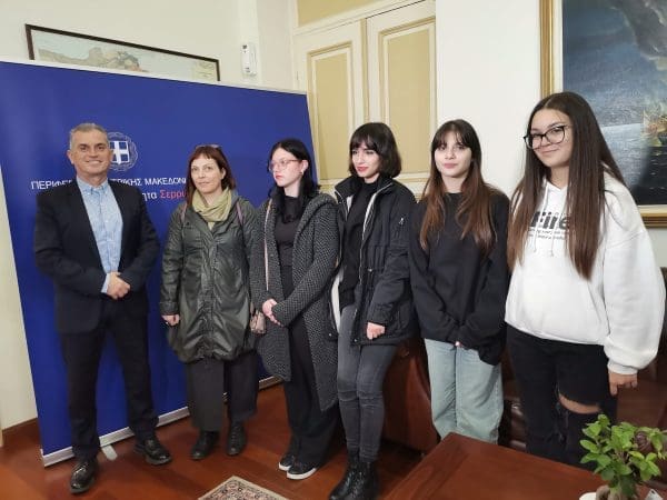 Οι μαθήτριες Αναστασία Κασμερίδου, Αθανασία Αρκουζίδου, Γρηγορία Κατσαβάκη και Ιορδάνα Ταζέ υπό την καθοδήγηση της καθηγήτριάς τους Αγγελική Ανθυμίδου κατάφεραν να διακριθούν μεταξύ 1185 συμμετοχών. Ο Αντιπεριφερειάρχης συνεχάρη τις μαθήτριες για την σημαντική τους επιτυχία και ευχήθηκε να συνεχίσουν να μας κάνουν υπερήφανους με τις διακρίσεις τους. Στη σεμνή τελετή που πραγματοποιήθηκε παραβρέθηκαν η Διευθύντρια του 4ου Γυμνασίου Σερρών κ. Λίλα Σκέμπερη, ο Διευθυντής του 4ου Λυκείου Σερρών κ. Στέλιος Ρίζος και η κ. Ελευθερία Πάνου Πρόεδρος της ΕΛΜΕ Σερρών.