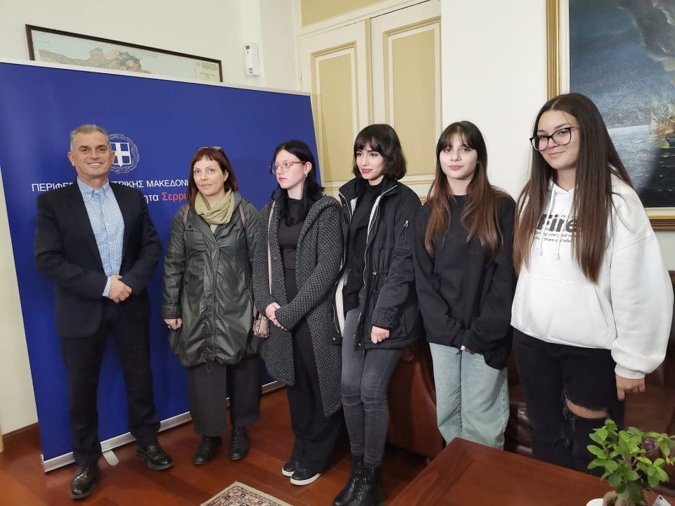 Οι μαθήτριες Αναστασία Κασμερίδου, Αθανασία Αρκουζίδου, Γρηγορία Κατσαβάκη και Ιορδάνα Ταζέ υπό την καθοδήγηση της καθηγήτριάς τους Αγγελική Ανθυμίδου κατάφεραν να διακριθούν μεταξύ 1185 συμμετοχών. Ο Αντιπεριφερειάρχης συνεχάρη τις μαθήτριες για την σημαντική τους επιτυχία και ευχήθηκε να συνεχίσουν να μας κάνουν υπερήφανους με τις διακρίσεις τους. Στη σεμνή τελετή που πραγματοποιήθηκε παραβρέθηκαν η Διευθύντρια του 4ου Γυμνασίου Σερρών κ. Λίλα Σκέμπερη, ο Διευθυντής του 4ου Λυκείου Σερρών κ. Στέλιος Ρίζος και η κ. Ελευθερία Πάνου Πρόεδρος της ΕΛΜΕ Σερρών.