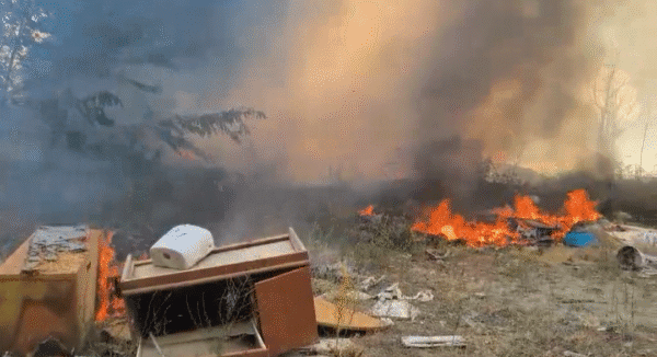 Οι πυροσβεστικές δυνάμεις παραμένουν στο σημείο για πλήρη κατάσβεση και αποφυγή αναζωπυρώσεων.