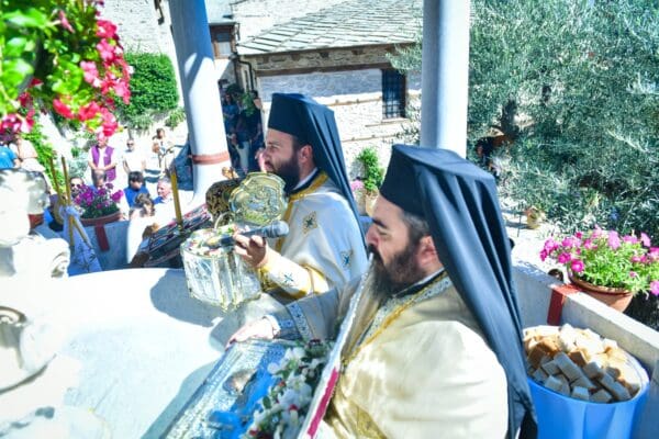 Προ της απολύσεως της σημερινής θ. Μυσταγωγίας, που τελέσθηκε στην ως είρηται εορτάζουσα ιστορική ιερά Μονή των Σερρών, την έκπαλαι στεφανωμένη με βασιλικές και πατριαρχικές προνομίες, ιερουργήσαντος του Σεβ. Μητροπολίτου Σερρών και Νιγρίτης κ. Θεολόγου, με την συμπροσευχητική παρουσία των Βουλευτών του Νομού Σερρών κ. κ. Αναστασίου Χατζηβασιλείου, Φωτεινής Αραμπατζή και Θεοφίλου Λεονταρίδη, του Αντιπεριφερειάρχου Σερρών κ. Παναγιώτου Σπυρόπουλου, της Δημάρχου Σερραίων κ. Βαρβάρας Μητλιάγκα, εκπροσώπων των Στρατιωτικών και Αστυνομικών Αρχών του τόπου και της Πυροσβεστικής Υπηρεσίας Σερρών, καθώς και πλήθους φιλέορτων χριστιανών, ευλογήθηκαν τα εόρτια κόλλυβα του Αγίου και ακολούθως τελέσθηκε, κατά το έθος, η ακολουθία του Αγιασμού στην φιάλη της ιεράς Μονής.