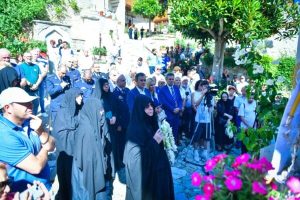 Τέλος, ο Σεβασμιώτατος επικαλέσθηκε πατρικώς, τόσο στην οσιωτάτη Ηγουμένη, μον. Φεβρωνία και σε ολόκληρη την εκλεκτή αδελφότητα της ιεράς Μονής, όσο και στους πολυπληθείς ευσεβείς προσκυνητές, την χάριν του Τιμ. Προδρόμου και διενεμήθη σε όλους το πατροπαράδοτο μοναστηριακό κέρασμα.