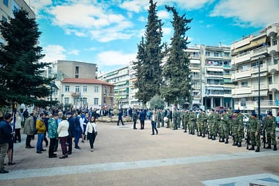 Μετά το πέρας της Δοξολογίας, εψάλη επιμνημόσυνος δέηση, κατετέθησαν στέφανοι, τηρήθηκε ενός λεπτού σιγή στην μνήμη εκείνων, που θυσιάσθηκαν για την ελευθερία της Πατρίδος μας, εψάλη ο Εθνικός μας Ύμνος ενώπιον του ανδριάντος του Σερραίου ήρωος της Ελληνικής Επαναστάσεως του 1821, Αρχιστρατήγου Εμμ. Παπά, στον χώρο της πλατείας «Ελευθερίας» Σερρών και πραγματοποιήθηκε η καθιερωμένη παρέλαση με την συμμετοχή αντιπροσωπειών σχολικών τμημάτων, Πολιτιστικών Συλλόγων και τμημάτων του Στρατού.