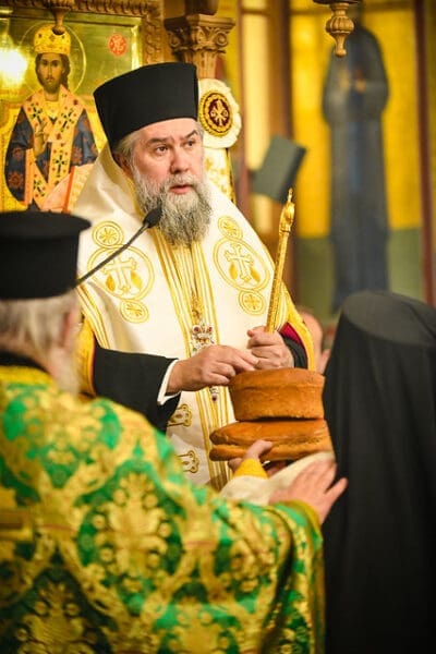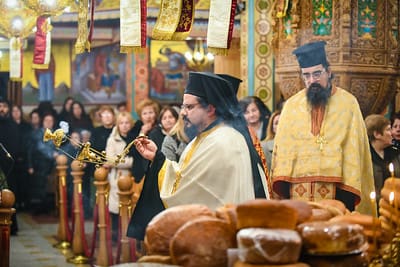 Προ της απολύσεως της ιεράς ακολουθίας του Εσπερινού, ο Σεβ. Ποιμενάρχης της Σερραϊκής Εκκλησίας κ. Θεολόγος ομίλησε με δυνατό, αφυπνιστικό τρόπο στους πολυπληθείς πιστούς, τονίζοντας, μεταξύ άλλων, ότι οι μνήμες των αγίων της Εκκλησίας μας αποτελούν, συν τοις άλλοις, αφορμή για τον προσωπικό μας αγιασμό και την φανέρωση του μυστηρίου της Εκκλησίας, ως Σώματος Ιησού Χριστού και εργαστηρίου αγιότητος, αλλά και ως ευκαιρία για πνευματική αφύπνιση, διδαχή και οικοδομή.