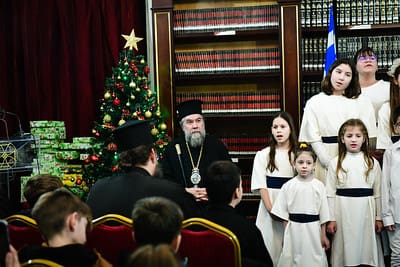 Συγκεκριμένως, στις 5:30 το απόγευμα της Τρίτης 6 Ιανουαρίου 2026, ο Σεβ. κ. Θεολόγος καλωσόρισε τους μικρούς φίλους του Χριστού μας στην εορταστική εκδήλωση, που διοργάνωσε η Εκκλησία των Σερρών στην αίθουσα «ΑΡΧΙΕΠΙΣΚΟΠΟΣ ΧΡΙΣΤΟΔΟΥΛΟΣ» της εκκλησιαστικής Βιβλιοθήκης «Μυριόβιβλος» του Μαξιμείου ιδρύματός της.