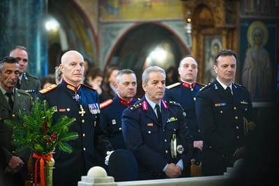 Τέλος, η στρατιωτική Χορωδία της 10ης Μηχανοποιημένης Ταξιαρχίας, έψαλλε παραδοσιακά κάλαντα και πρωτοχρονιάτικα ψαλτοτράγουδα, δίδοντας έναν ιδιαίτερο χαρακτήρα εόρτιας ευφροσύνης, που όλοι οι παριστάμενοι χάρηκαν. «Είναι εξαιρετική τιμή και ακριβό προνόμιο, να υπηρετείτε την πολυαγαπημένη Πατρίδα μας , την Ελλάδα», είπε ο Σεβασμιώτατος, ευχαριστώντας τον κ. Διοικητή και τους στρατιώτες της Ταξιαρχίας για τον επιδεικνυόμενο πάντοτε σεβασμό προς την Μητέρα Εκκλησία, ευχόμενος στον μεν κ. Λιάμπα την εξ ύψους ενίσχυση στα πολυεύθυνα καθήκοντά του, στους δε στρατιώτες καλή θητεία και κάθε προκοπή στην ζωή τους.
