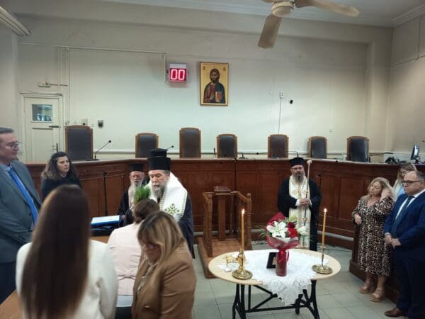 και κο­ρυ­φαί­ο. Ευχόμεθα, από καρδίας, την εξ ύψους ευλογίαν, δύναμιν και φωτισμόν στους αξιοτίμους λειτουργούς της δικαιοσύνης, επ’ αγαθώ της κοινωνίας και της Πατρίδος μας».