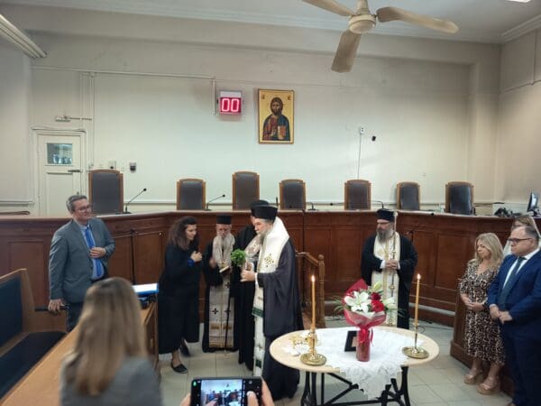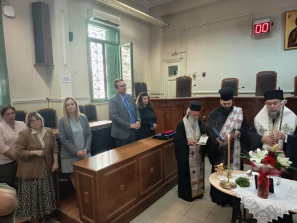 Λεμονιάς Βαλτοπούλου, του Προέδρου του Δικηγορικού Συλλόγου Σερρών κ. Παναγιώτη Καρίπογλου και λοιπών δικαστικών υπαλλήλων και νομικών, τελέσθηκε, σήμερα, Δευτέρα 22 Σεπτεμβρίου 2025, στις 12:30 το μεσημέρι, στο Δικαστικό Μέγαρο Σερρών, η ακολουθία του Αγιασμού, από τον Σεβ. Μητροπολίτη Σερρών και Νιγρίτης κ. Θεολόγο, με αφορμή την έναρξη των εργασιών του νέου δικαστικού έτους.