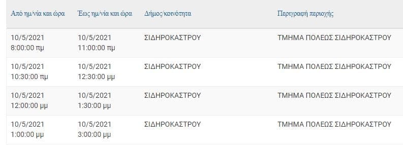 Σιδηρόκαστρο: Διακοπές ρεύματος Δευτέρα 10 Μαΐου
