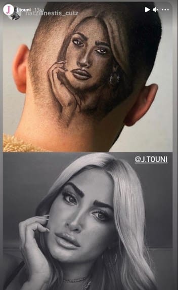 Μερικές φωτογραφίες από την ακραία αντίδραση ενός φανατικού της θαυμαστή μοιράστηκε στον προσωπικό της λογαριασμό στο Instagram η Ιωάννα Τούνη. Τι έκανε ο νεαρός άνδρας προκειμένου να έχει πάντα μαζί του το είδωλό του; Ένα ειδικό κούρεμα με σχέδιο το πρόσωπό της.