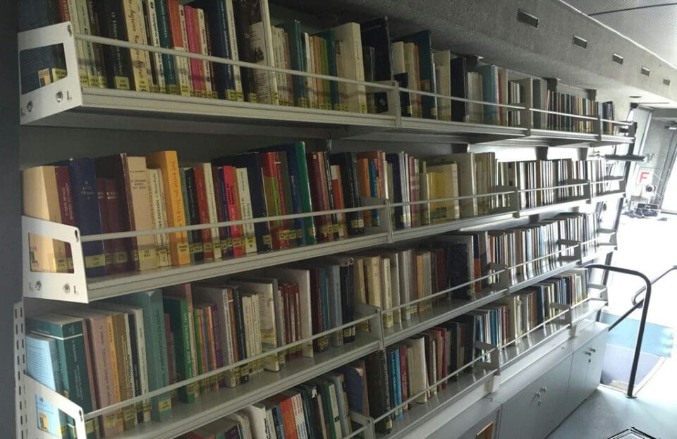 Η κινητή μονάδα διαθέτει ιδιαίτερη συλλογή που ανανεώνεται συνεχώς, της οποίας η επιλογή πραγματοποιείται με γνώμονα τον πληθυσμό που εξυπηρετεί, με ιδιαίτερη έμφαση στην κάλυψη των αναγκών της εκπαιδευτικής κοινότητας.