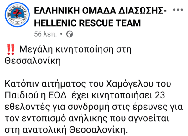 Στις έρευνες για τον εντοπισμό της συνδράμει και η Ελληνική Ομάδα Διάσωσης μετά από αίτημα του «Χαμόγελου του Παιδιού».