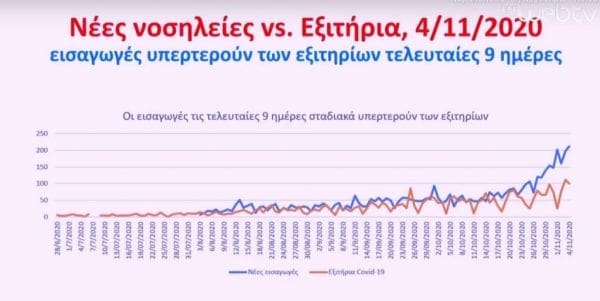 Ο κ. Τσιόδρας εξήγησε πως το σύστημα Υγείας θα πιεστεί τις επόμενες ημέρες, καθώς περισσότεροι άνθρωποι μπαίνουν στα νοσοκομεία παρά παίρνουν εξιτήριο.