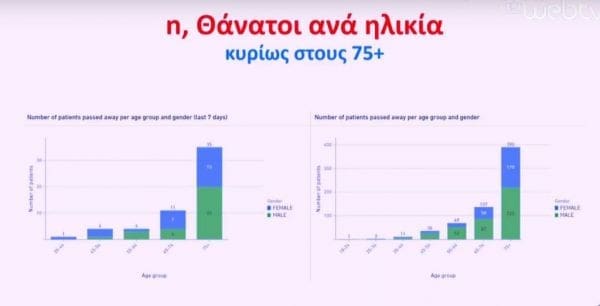 Οι θάνατοι αφορά κυρίως τους ηλικιωμένους ανθρώπους άνω των 75, ωστόσο παρατηρείται μία μικρή αύξηση και στις μικρότερες ηλικίες, η οποία θα αυξηθεί αν αυξηθούν και οι νοσηλείες.