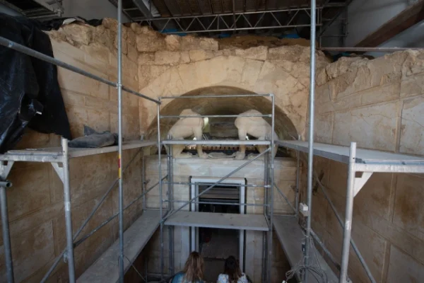 Δεξιά και αριστερά στέκουν οι Καρυάτιδες, ενώ στον τελευταίο θάλαμο του τάφου, που είναι και ο νεκρικός, βρέθηκαν διαφορετικά οστά που προφανώς αφορούν την ίδια οικογένεια σε ταφές που έγιναν σε μεταγενέστερες φάσεις. Οπως μας λέει η κυρία Μαλαμίδου, συνολικά βρέθηκαν οστά που αντιστοιχούν σε πέντε σκελετούς. Εννοείται ότι όλα τα στοιχεία-Καρυάτιδες, Αρπαγή της Περσεφόνης, Σφίγγες- δείχνουν πως πρόκειται για το βασίλειο του Κάτω Κόσμου. Οι εργασίες αναστήλωσης συνεχίζονται στο εσωτερικό του μνημείου ενώ όπως έχει αναγγελθεί από την Υπουργό Πολιτισμού θα αποκατασταθεί το σύνολο του περιμετρικού περιβόλου του τύμβου και όλοι περιμένουν με αγωνία και τη δημιουργία του νέου μουσείου, το οποίο, όπως μας είπε η Προισταμένη της Εφορείας, έχει ήδη προβλεφθεί μέσα από ΕΣΠΑ.