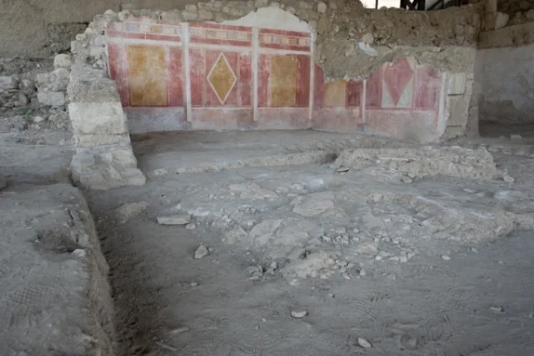 Μάλιστα τα συγκεκριμένα σχέδια και αυτό το κόκκινο χρώμα «δίνουν αυτή την τρισδιάστατη απόδοση στους χρωματιστούς πλίνθους», όπως μας λέει η κυρία Μαλαμίδου. Σύμφωνα με τον ισχυρισμό αυτό, το σπίτι είναι προγενέστερο των αντίστοιχων οικιών της Πομπηίας, όπως τη Σαμνιτική Οικία που ήταν η πρώτη που μαρτυρούσε αυτό το στυλ της ψευδαίσθησης του τρισδιάστατου. Είναι αυτή ακριβώς που κάνει τη διαφορά και συνιστά την επανάσταση της συγκεκριμένης τέχνης σε σχέση με την προγενέστερη ρωμαϊκή και για πρώτη φορά δεν τη συναντάμε στην Πομπηία, όπως ευρύτερα θεωρείται, αλλά εδώ σε αυτό το πλούσιο σπίτι στην Αμφίπολη.