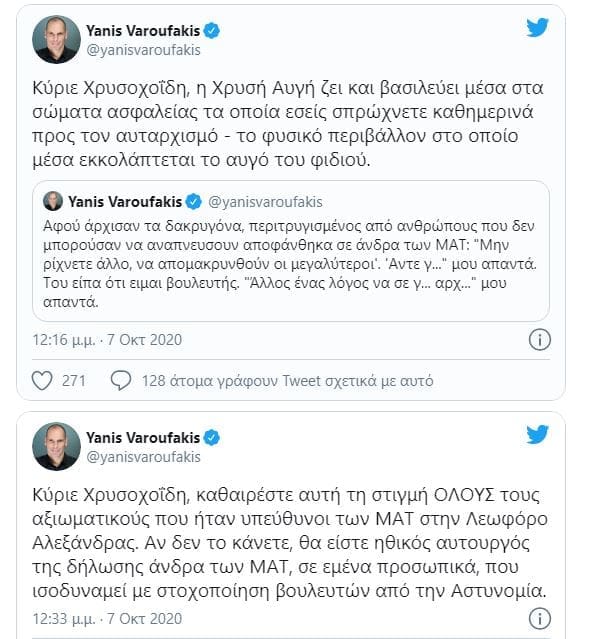 Μετά την καταγγελία ο κ. Βαρουφάκης απευθύνθηκε στον Μιχάλη Χρυσοχοΐδη γράφοντας: