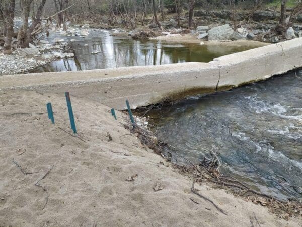 Μερικούς μήνες πριν, ήρθε μία ξαφνική νεροποντή που κατέστρεψε το μοναδικό σημείο πρόσβασης στη αντίπερα όχθη και απέκλεισε την πρόσβαση στο εκκλησάκι του Αγίου Παντελεήμονα.